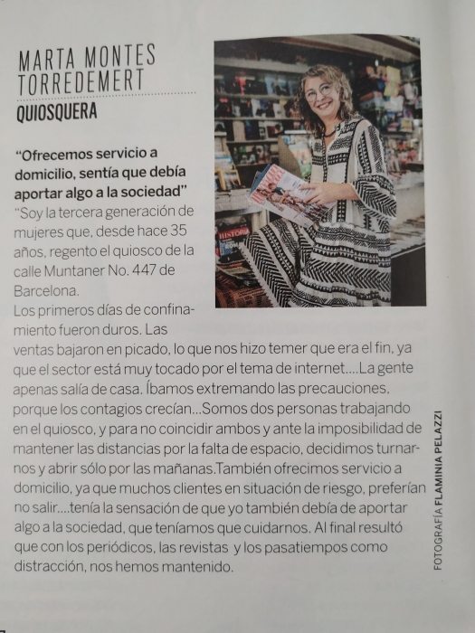 En la edición de este mes de Agosto de la revista Woman sale una compañera vendedora de prensa dentro del reportaje que dedican a las mujeres esenciales durante la pandemia que estamos viviendo, i aprovechamos este medio de comunicación para compartirlo con todos vosotros/as.